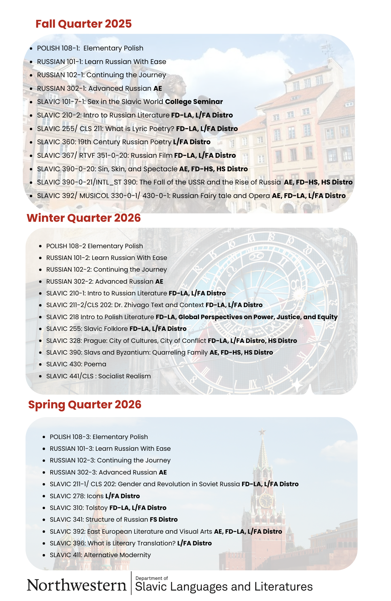 This list is tentative and is subject to change. Winter Quarter offerings finalized November 3rd, 2025. Spring Quarter offerings finalized February 9, 2026.
